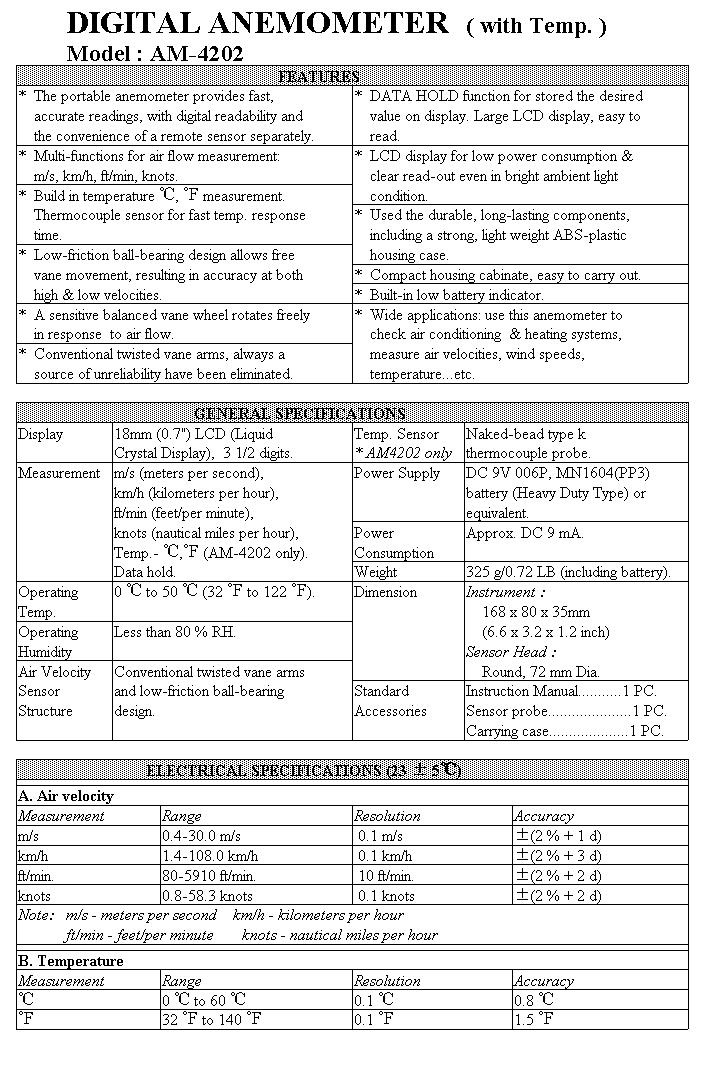 Weight: 325 gr. (with battery) _ Supplied with sensor probe and instruction manual Spare fan supplied also separately