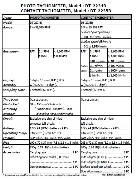 Test Range: 2.5 to 99,999RPM(r/min)
