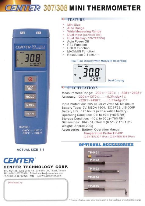 Accessory: Manual, 9V battery, Temperature Probe TP- K01